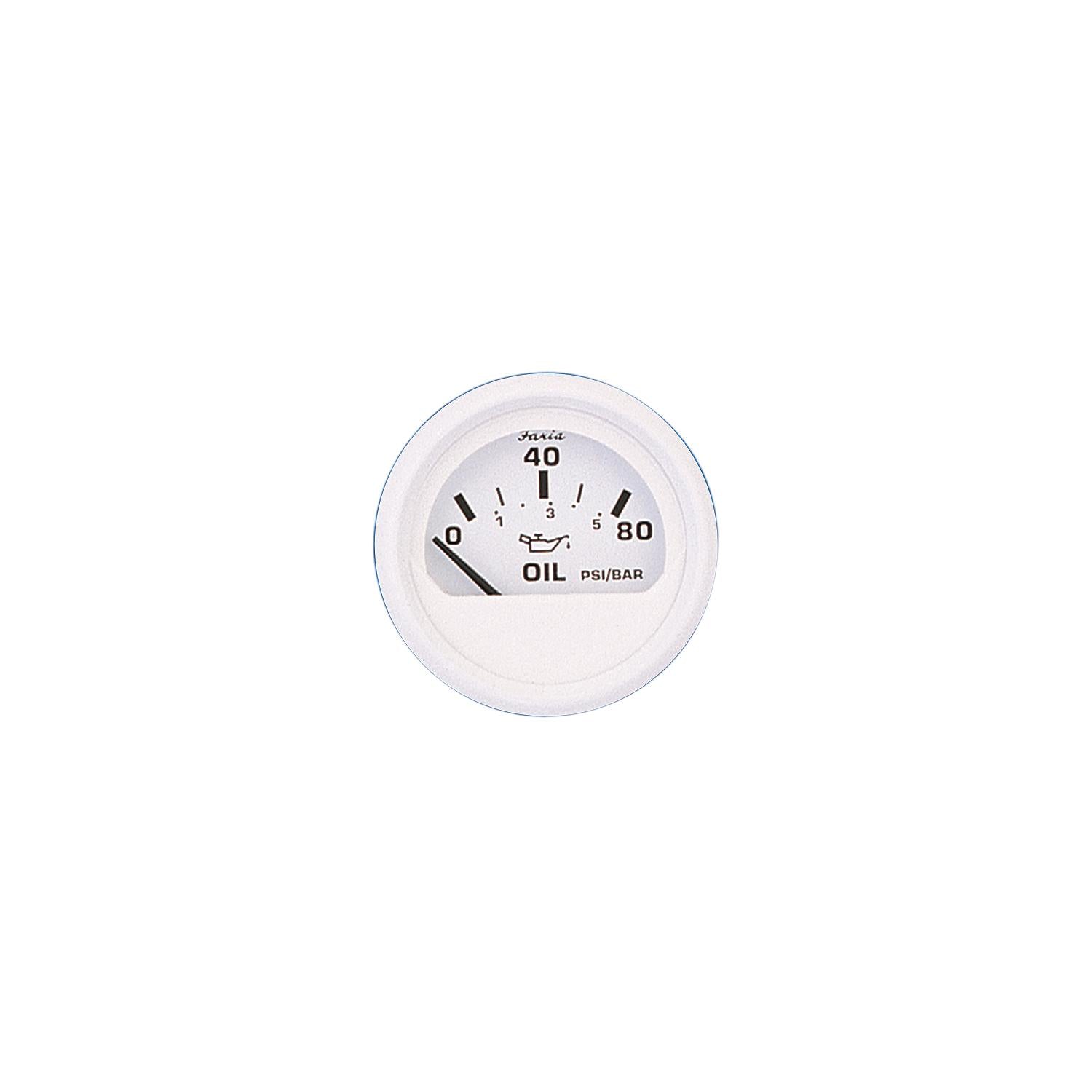 Faria Dress White 2" Oil Pressure Gauge 80 PSI